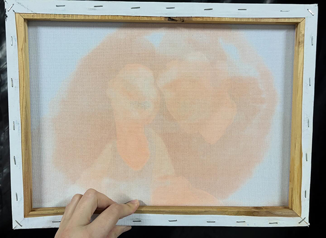 Hidden behind the painting is a second image. A portrait of a couple who are no longer together. This concealed layer alters the entire reading of the work. What appears whole at first glance carries a different reality beneath it. The piece shifts from an image of objects to something closer to memory, to concealment, to the quiet persistence of what remains after something ends.