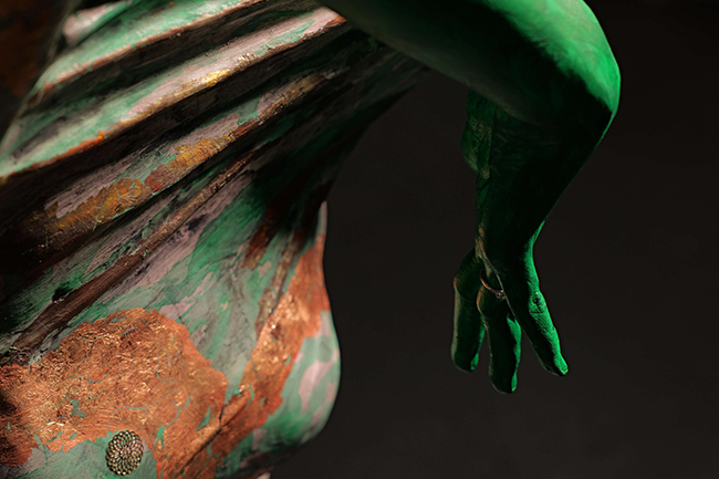 In this framework, the body is redefined. It is no longer treated as physical substance but as a vessel. What appears on the surface is intentionally incomplete, suggesting that what matters most cannot be directly seen. This idea is carried through both the paintings and the sculptures. Forms are often fragmented, resisting easy resolution. Unity exists, but it is withheld. The viewer is required to engage more closely, to move beyond immediate perception in order to grasp what is implied rather than stated.