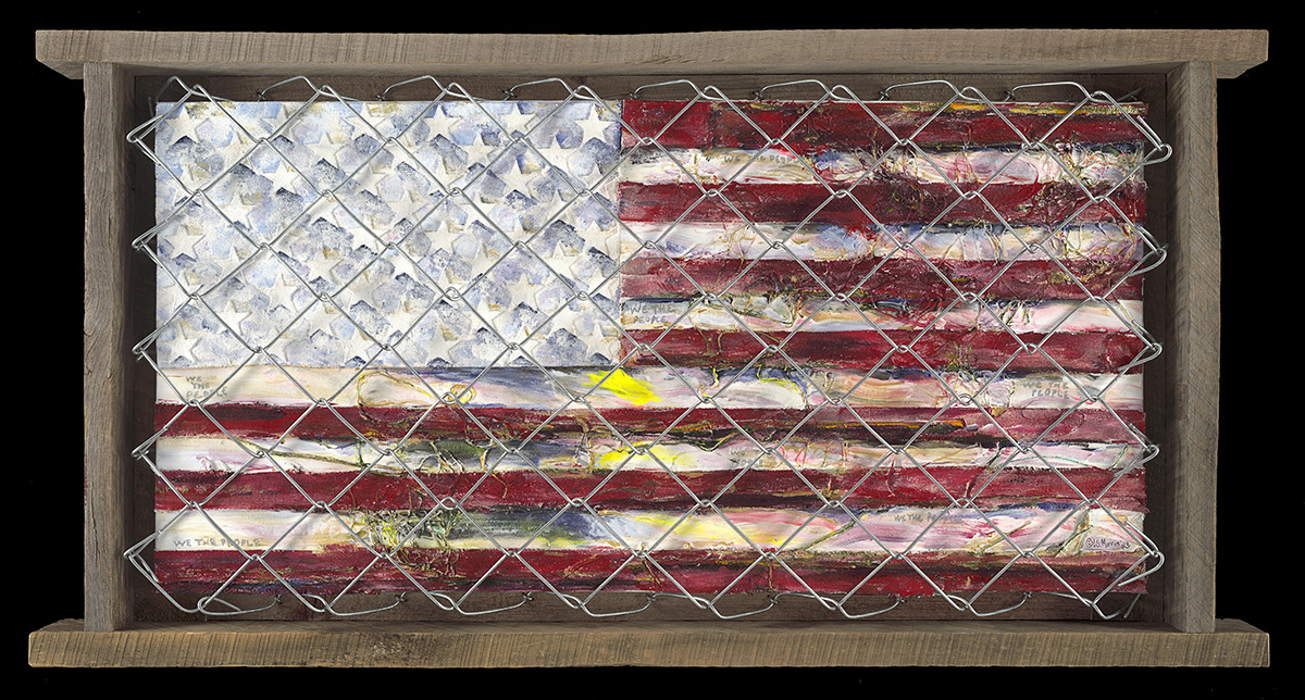The horizontal format (19”x37”) stretches the scene like a landscape, but not a natural one. It is a constructed terrain, shaped by human hands. There is both a warning and an invitation in the work. Morris seems to ask: if this is of our own making, what next will we choose to make?
