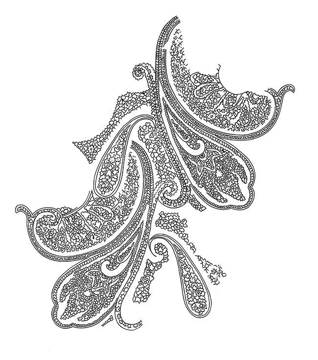 Parallel to this, her drawing and engraving practice carried forward for more than 30 years. Using nib pens and India ink, she pursued a language of precision. These works were not mechanical exercises but hand-driven explorations where every mark mattered. Ink and engraving became her foundation, a way to translate thought into form with discipline and clarity. They were also preparation, strengthening her ability to move freely between engraving and textiles.