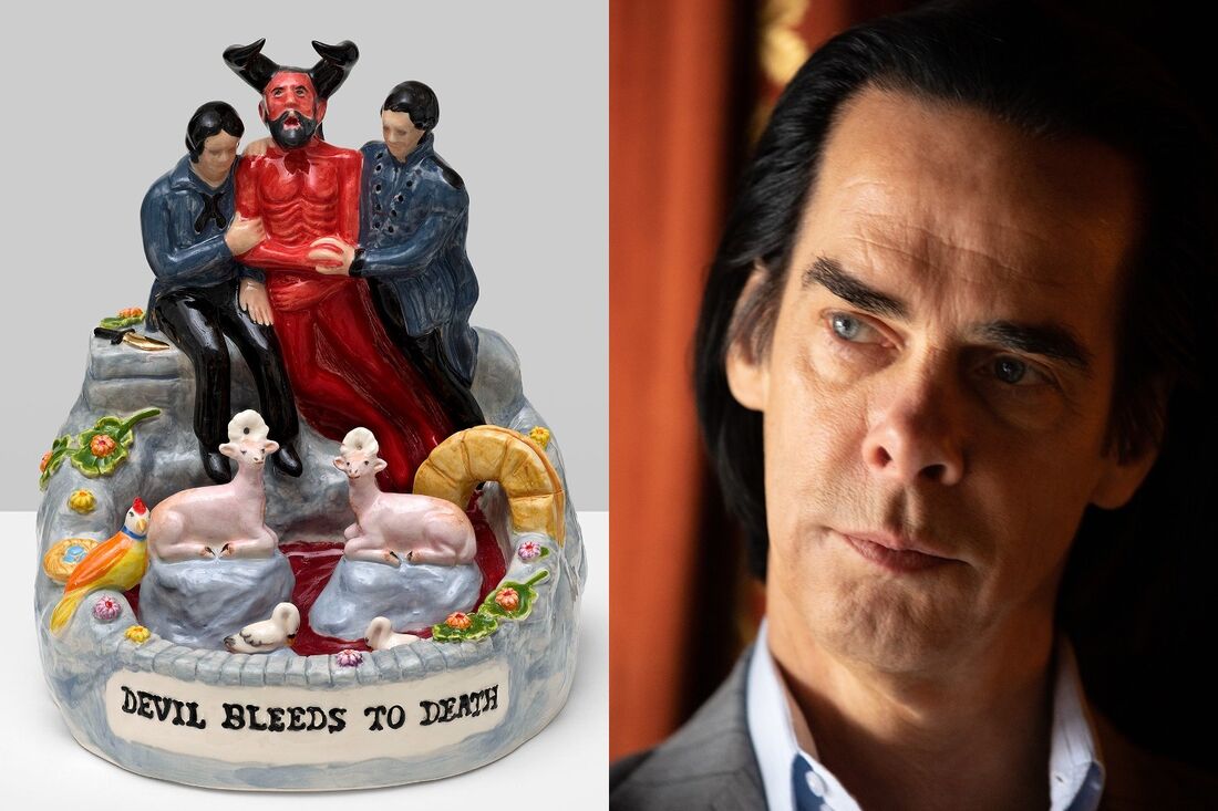 “What began as a desire to create a single little figure of the devil as a vehicle for a deep red glaze turned into a journey toward some kind of absolution from a series of devastating events,” Cave said in a press release for the exhibit. “[The ceramic works]—and in fact, all the songs I write—talk about the idea of ​​forgiveness, the idea that there is a moral virtue in beauty. It’s a kind of balance of our sins.”