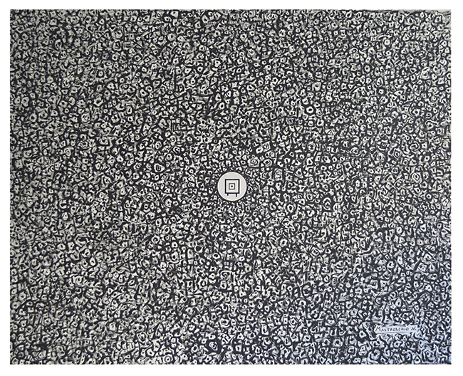 At the center of the work, he places what he identifies as the Universal Symbol of Life, depicted as the origin of all created things. This center functions like a nucleus—visually and philosophically. It suggests that creation begins with a single organizing mark or principle, and that everything else radiates outward from that core. Even without adopting the full framework of Cellulism, the viewer can feel what that central placement implies: an insistence on origin, on beginnings, on the possibility that the universe has a readable grammar.