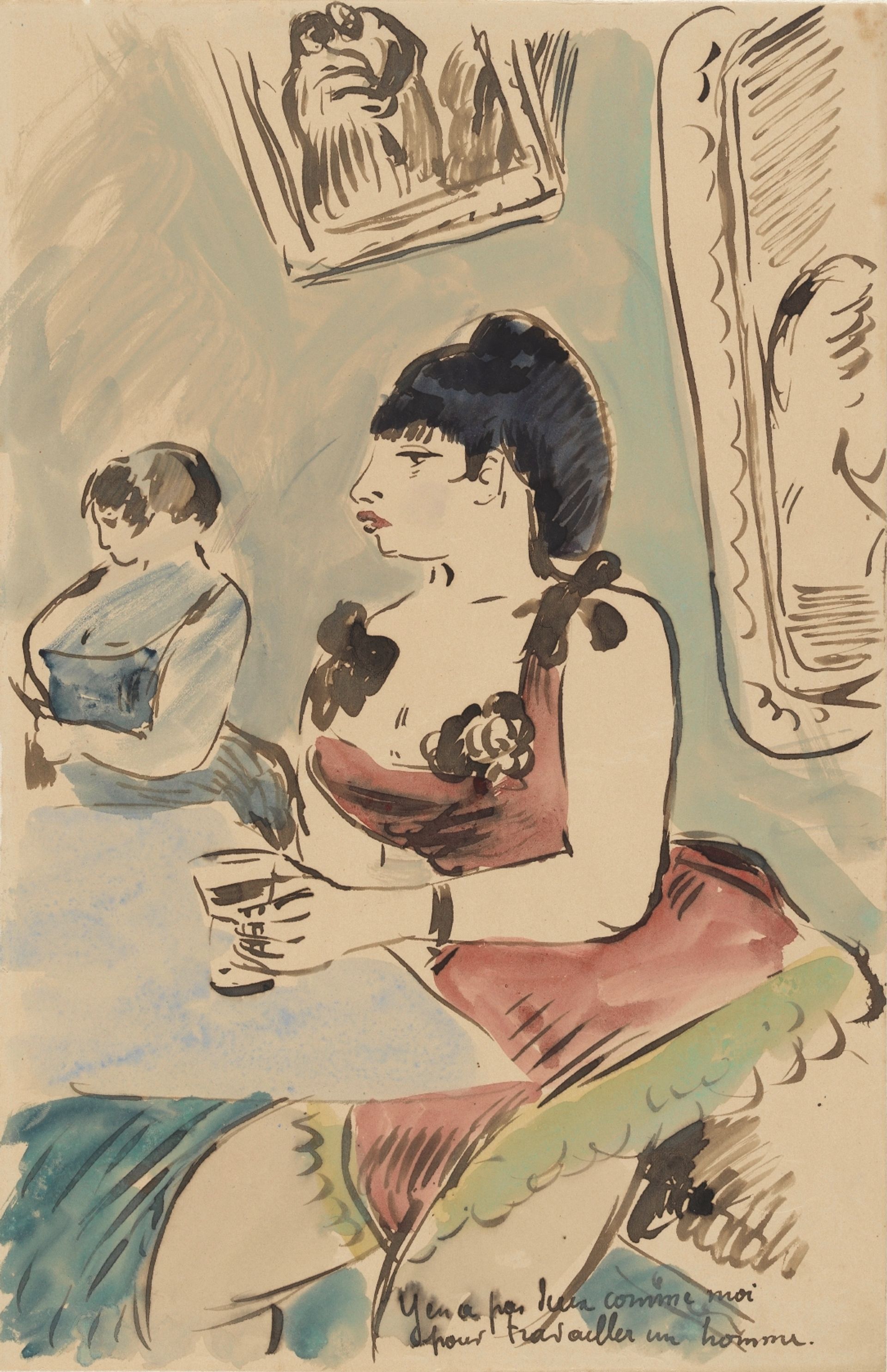 Among the first works that Bernard published Van Gogh in Arles was Brothel sceneshipped June 1888. Aft lady watch as a younger woman pours a glass and seduces a customer in the salon. On the wall behind them hangs a painting of Eve: she reaches a branch to pluck the apple, just before the “fall.” Van Gogh replied that he found this watercolor “VERY VERY INTERESTING”, underlining his words in capital letters.