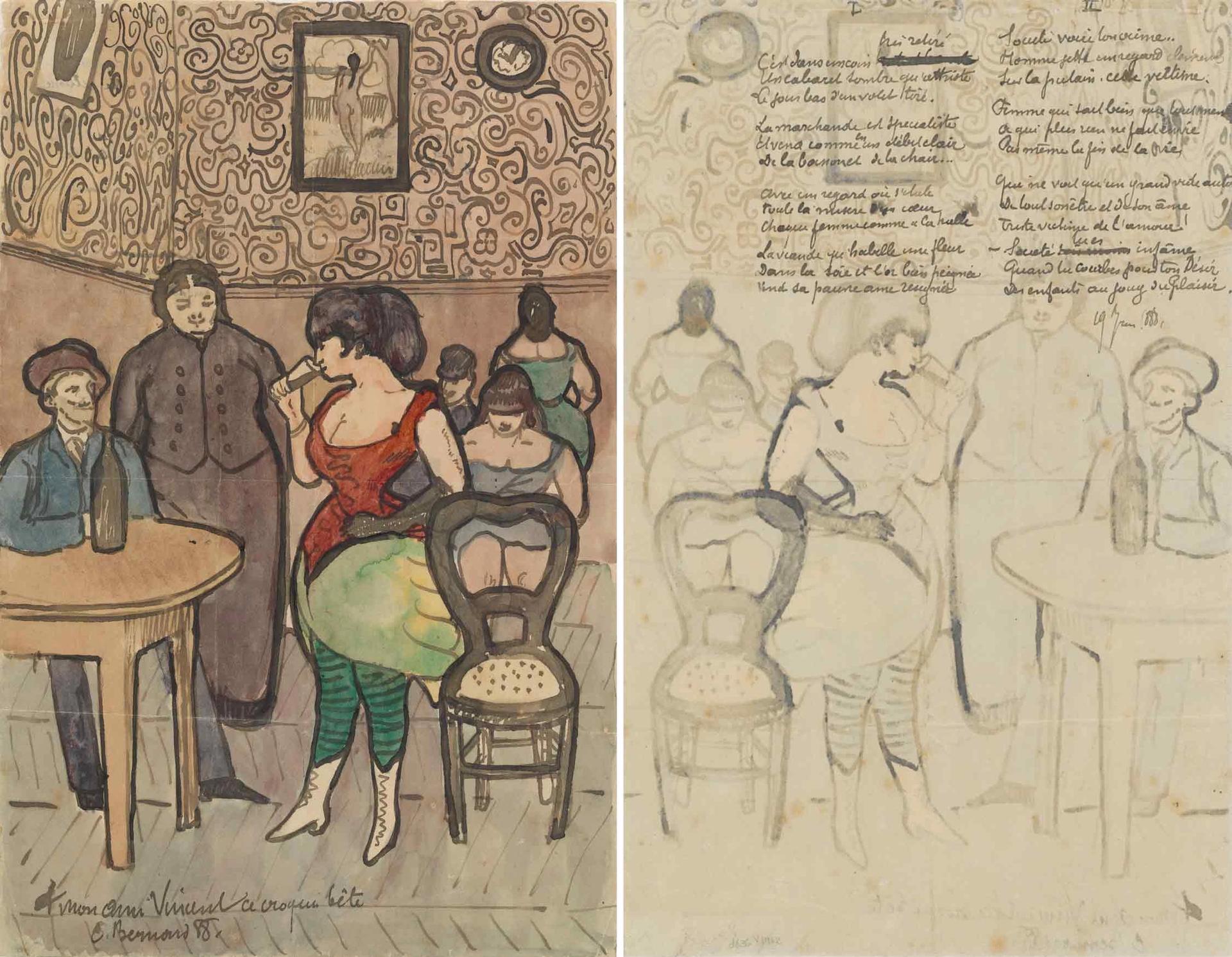 by Emile Bernard Brothel scene and poem on reverse (June 1888)