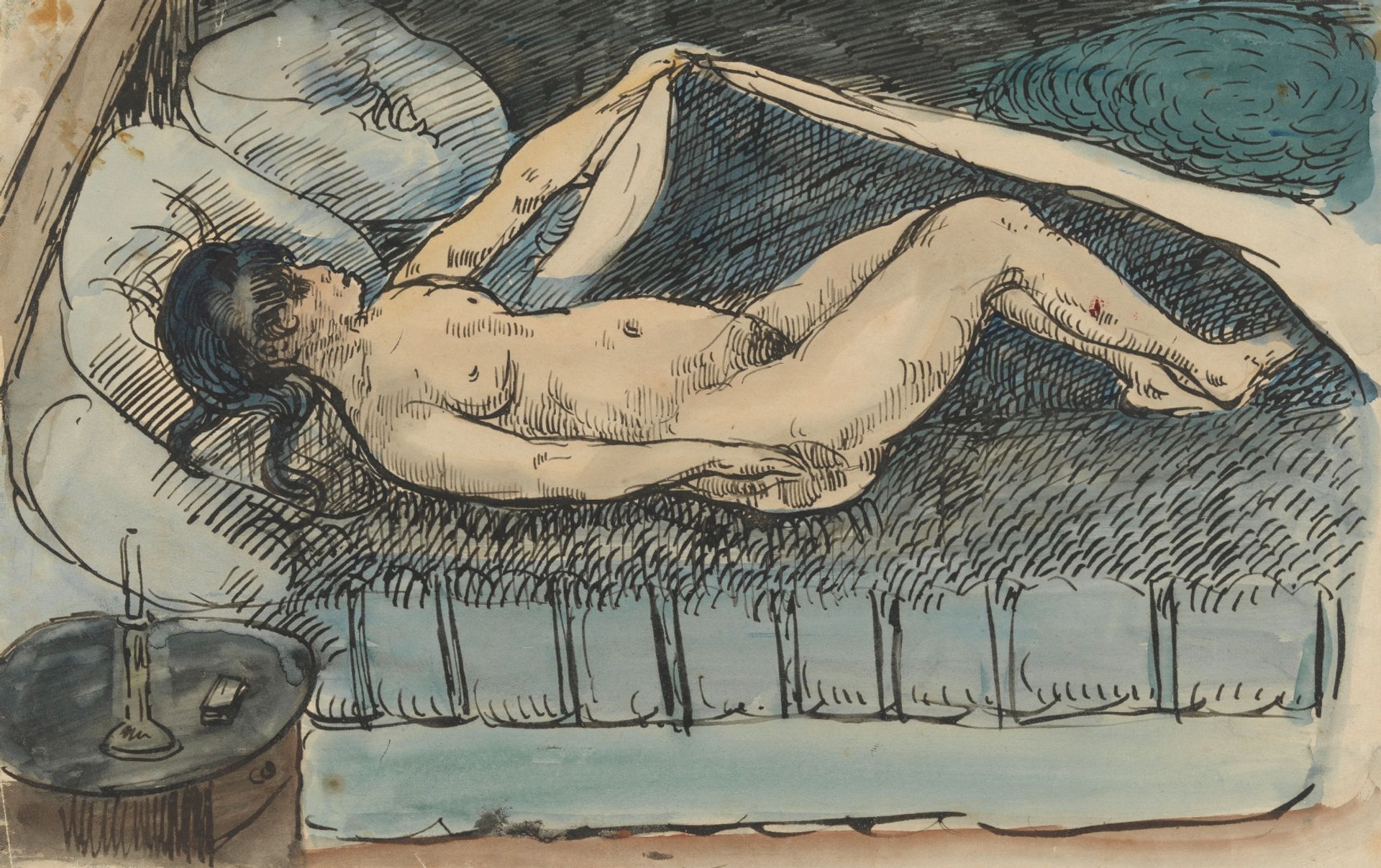 Bernard’s second batch of ten drawings, sent a month later, included Female nude lying on a bed. Although Bernard ordered his friend not to show these drawings to anyone, Vincent immediately sent them to his brother Theo in Paris: “He [Bernard] I am expressly forbidden to send them, but you will receive them by the same mail.” Vincent again approved of Bernard’s efforts, giving the works the award of being “very Rembrandtesque” and reminiscent of Francisco Goya.